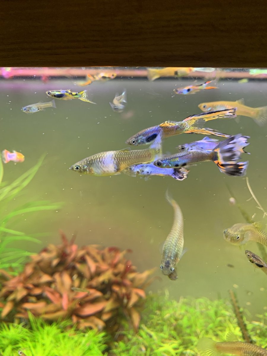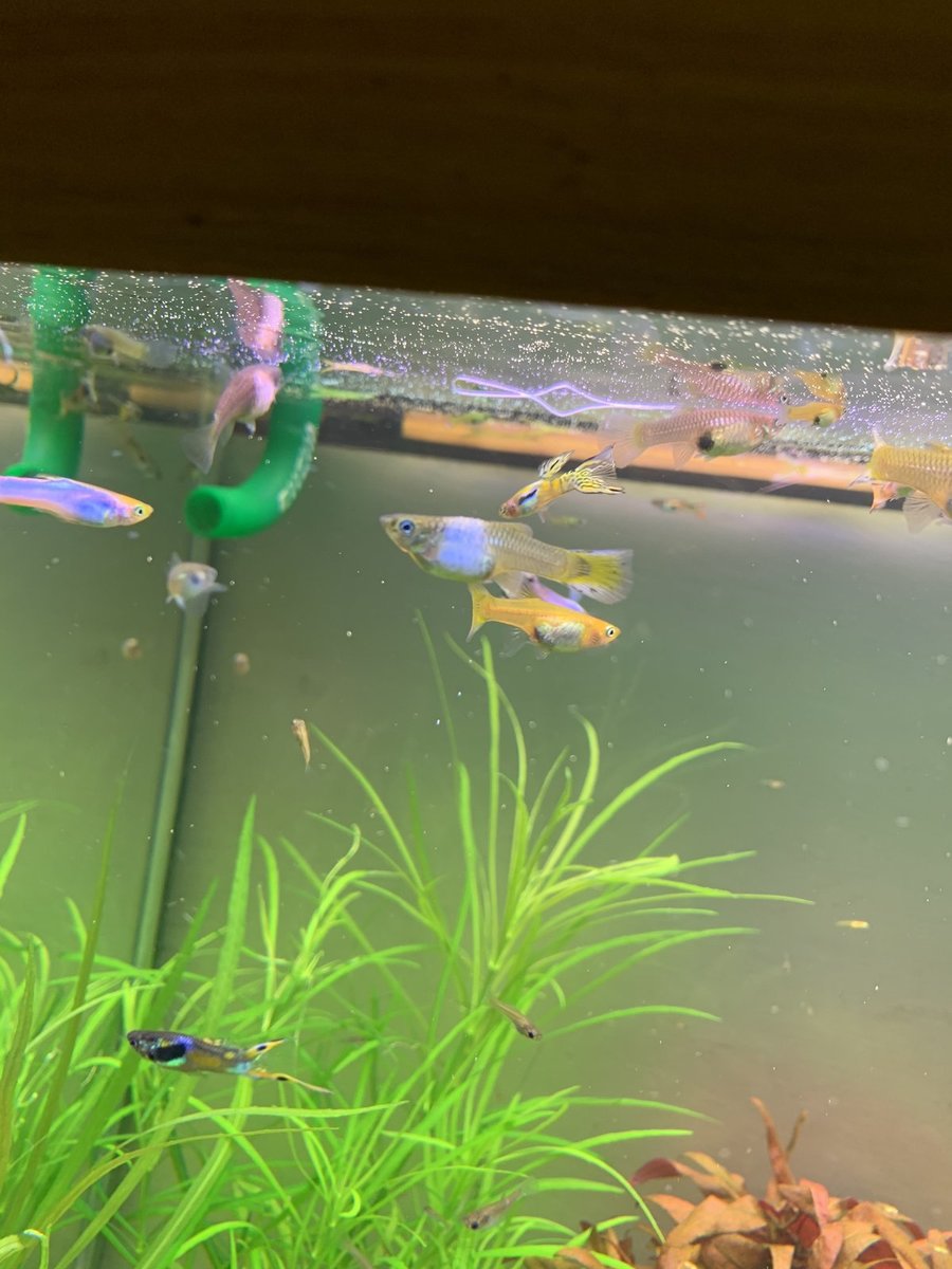 Ik merk dat ze vaak schuren tegen de planten en stenen. Soms hangen er enkele guppy’s aan het wateroppervlak te happen, maar mijn planten pearlen voortdurend. Ook krijgen ze plekken op hun buik en sterven helaas niet veel later.