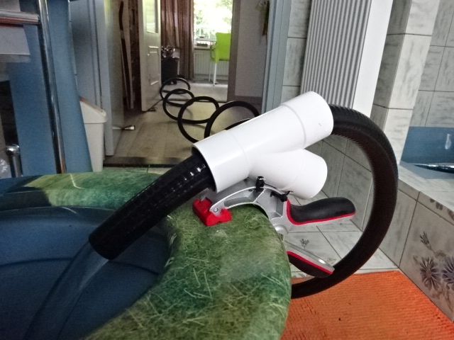 2: Ik koppel de hevelklok van mijn bodemzuiger aan de tuinslang.