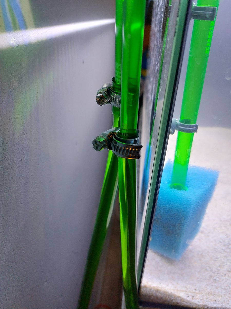Zoals men het ziet heb ik slangenklemmetjes op de invoer en uitvoer slang gedaan (voor de zekerheid)!!