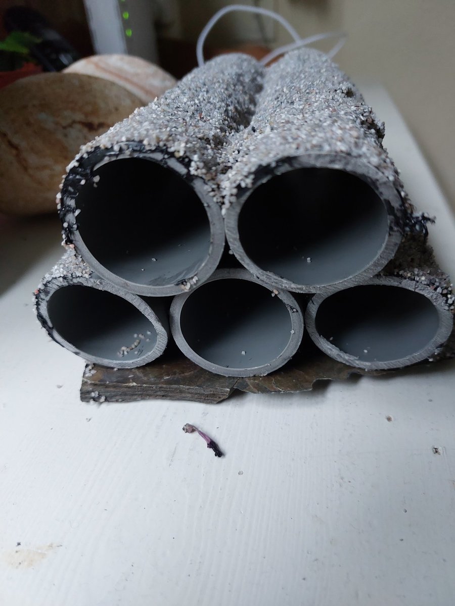 Ik heb van pvc pijp schuil holen gemaakt met steentjes er op kijk maar !!
