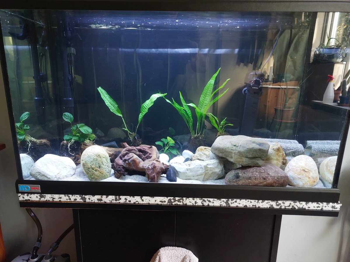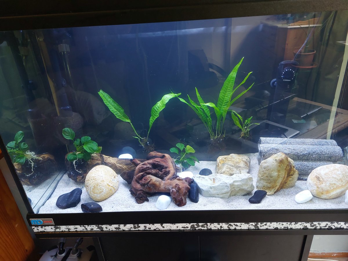 Dus meer stenen dan hout eigenlijk hier en daar een plantje javavaren en anubias !!