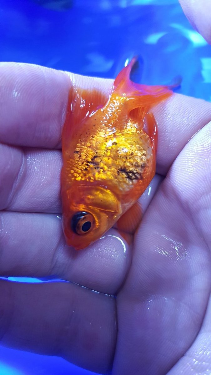 Ik maak me een beetje zorgen om één van mijn sluierstaart goudvissen. Hij heeft sinds een weekje allemaal zwarte vlekken op zijn lichaam.